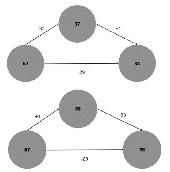 Przeanalizuj dokładnie przykład, a następnie rozwiąż następne podpunkty. Na początku odejmij pełną liczbę większą niż podana, a następnie dodaj jej różnicę i na odwrót.