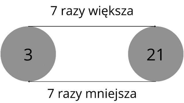 Wpisz dane w grafy, tak, aby całość była zgodna. Jeżeli liczba powinna być 7 razy większa, to pomyśl, ile razy powinna być mniejsza, aby była równa początkowej liczbie.