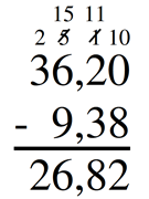 W odejmowaniu liczb dziesiętnych sposobem pisemnym układaj liczby tak, by w każdej z kolumn były tylko cyfry tego samego rzędu. Obliczenia rozpocznij od prawej kolumny.