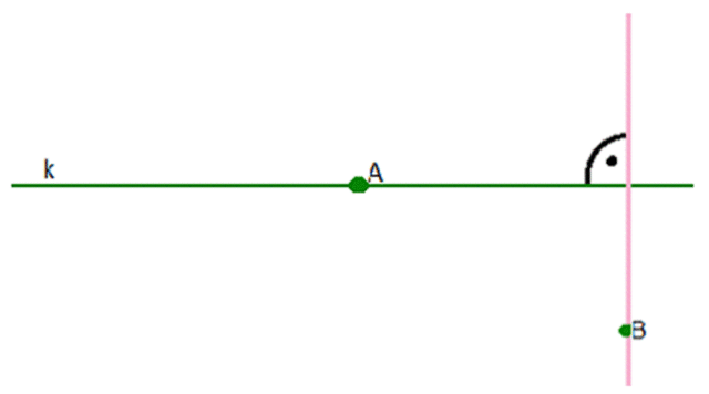 Położenie dorysowanej prostej jest ustalone przez podany punkt B i kąt 90°.