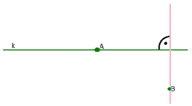 Korzystając z ekierki, narysuj prostą prostopadłą do prostej k przechodzącą przez punkt B.