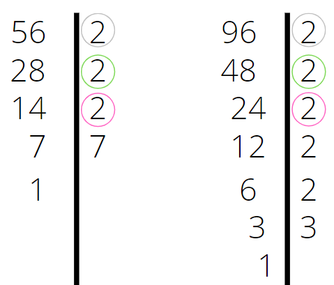 Zastosuj metodę z przykładu 4 i znajdź największy wspólny dzielnik liczb: 56 i 96.