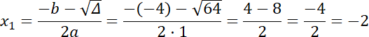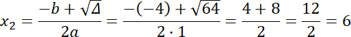 ∆ = b2 – 4ac = (–4)2 – 4 · 1 · (–12) = 64