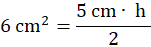 gdzie a jest bokiem trójkąta, a h jest wysokością opuszczoną na ten bok trójkąta. Zauważ, że bok AB wynosi 5 cm. Należy znaleźć wysokość opuszczoną na ten bok, której początek znajduje się w wierzchołku C.