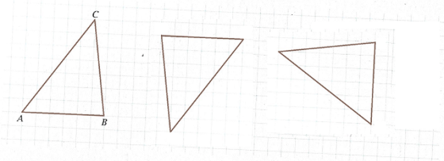 Dorysuj trójkąt, który będzie przystawał do ABC, w ten sposób, aby narysowane już odcinki stanowiły odpowiedni bok kwadratu.
