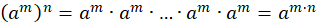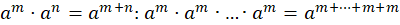 Zauważ, że jeżeli rozpiszesz potęgi am jako mnożenie, to potęg am jest w sumie n. Skorzystaj z własności