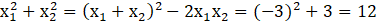 Następnie korzystamy z własności wzoru skróconego mnożenia I wyprowadzamy wzór ma sumę kwadratów pierwiastków: