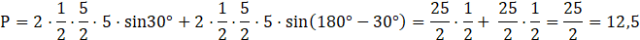 Wyznacz pole równoległoboku o przekątnych długości 5 cm i 10 cm, przecinających się pod kątem