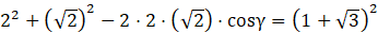 Dla dowolnego trójkąta kwadrat jednego z boków jest równy sumie kwadratów dwóch pozostałych odjąć podwojony iloczyn długości tych boków oraz cosinusa kąta między nimi.