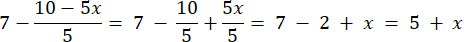 Podziel każdy wyraz w różnicy wyrażeń przez 5, a następnie zredukuj wyrazy podobne.