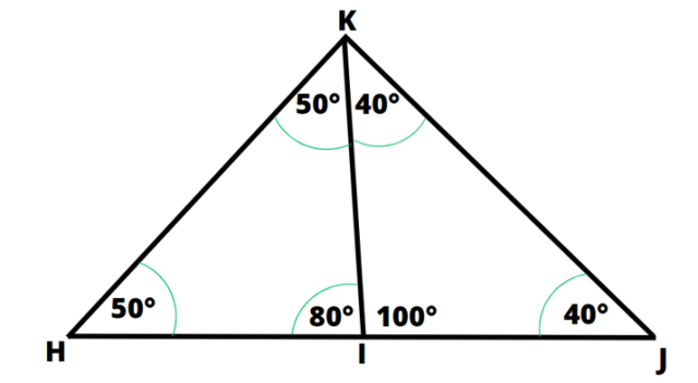 Trójkąt HIK też jest równoramienny. Kąty IHK i HKI są równe: