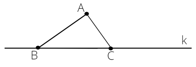 Odcinek AB jest bokiem w trójkącie ABC. Na prostej k leży punkt C. Narysuj trójkąt ABC, który spełnia podany warunek.