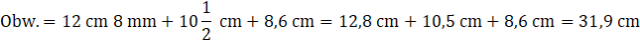 Musisz policzyć sumę długości wszystkich boków trójkąta.