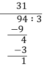 W tym zadaniu odpowiedz, jaka jest reszta po podzieleniu liczby 94 przez 3.