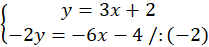 Wykonaj tabelkę, na górze podaj liczbę, którą podstawisz za x, aby wyliczyć y. Dzięki temu wyznaczysz współrzędne punktów, należących do wykresu funkcji liniowej. Zaznacz te punktu i przeprowadź przez nie prostą. Zrób to dla obu prostych. Układ jest nieoznaczony, ponieważ proste się pokrywają, więc ma nieskończenie wiele rozwiązań.