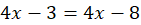 Najpierw należy wykonać działania, tak, aby uprościć równanie. Następnie przerzucamy niewiadome na jedną stronę, pamiętając o zmianie znaku, jeżeli przenosimy na przeciwną stronę znaku „=”. Gdy równanie jest już uporządkowane, łatwo dostrzec, że niewiadome zredukowały się do zera, a po prawej stronie równania zostało -5. Ta nierówność dowodzi o sprzeczności równania.