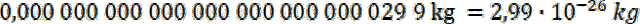 Liczbę 0,000 000 000 000 000 000 000 000 029 9 kg zapisz w notacji wykładniczej.