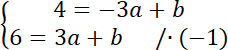 Współrzędne punktów C i D podstaw pod powyższe równanie. Zauważ, że powstanie układ dwóch równań z dwoma niewiadomymi. Całe drugie równanie pomnóż przez -1, aby współczynniki przy