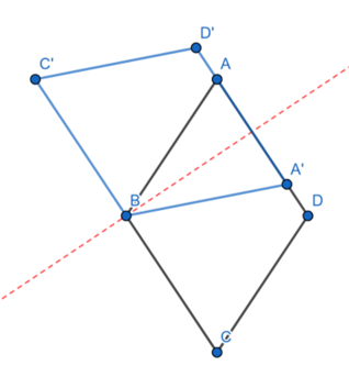 Zauważ, że po odbiciu rombu względem jednej z jego wysokości powstał trapez równoramienny. Ma on jedną oś symetrii.