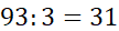 Wpisz liczbę: trzykrotnie mniejszą od 93: …
