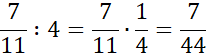 Zamień dzielenie na mnożenie przez odwrotność dzielnika (ułamek o liczniku 1 i mianowniku wynoszącym tyle, co dzielnik). Potem mnożysz mianowniki i przepisujesz licznik ułamka.