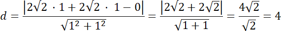 Odległość punktu P(x0, y0) od prostej l o równaniu ogólnym: Ax + By + C = 0 wyraża się za pomocą wzoru: