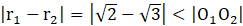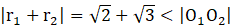 Jeżeli suma i różnica dwóch promieni, jest mniejsza niż odległość ich środków od siebie i, to znaczy że okręgi są rozłączne wewnętrznie.