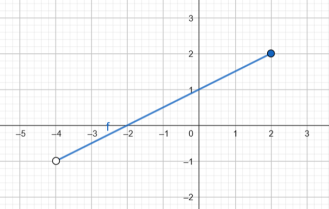 wstaw podane liczby i wyznacz ich wartości. Zaznacz w układzie współrzędnych otrzymane punkty i połącz je prostą. Zauważ, że przedział jest prawostronnie domknięty, więc prawy krańcowy punkt należy do wykresu, a lewy nie.