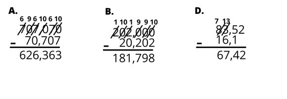 Odpowiedz, w którym przykładzie dobrze odjęto ułamki. Odpowiedz, jakie błędy popełniono w reszcie.
