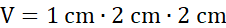 Użyj wzoru na objętość prostopadłościanu o długości a, szerokości b i wysokości c: