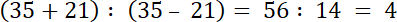W tym zadaniu musisz podzielić wynik dodawania liczb 35 i 21 przez wynik ich odejmowania.