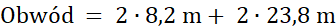 | tenis ziemny | 8,2 m | 23,8 m | 195,16 m2 | 64 m |