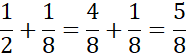 Mamy zamalowaną połowę koła, a w prawym górnym rogu połowę ćwiartki, czyli jedną ósmą: