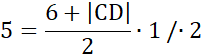 Wzór na pole trapezu o podstawach a i b i wysokości h ma postać: . Wiemy, że pole ma 5 cm2. Zmierzyliśmy wysokość |AD| =1 cm i podstawę |AB| = 6 cm, dlatego