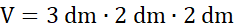 Użyj wzoru na objętość prostopadłościanu o długości a, szerokości b i wysokości c: