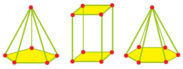 Ostrosłup o podstawie sześciokątnej ma: 7 wierzchołków, 13 krawędzi, 7 ścian (1 podstawa, 6 ścian bocznych).