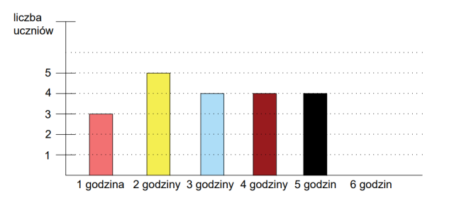 Najpierw zsumuj liczbę uczniów deklarujących daną liczbę godzin spędzonych przy komputerze, a następnie przenieś na wykres.
