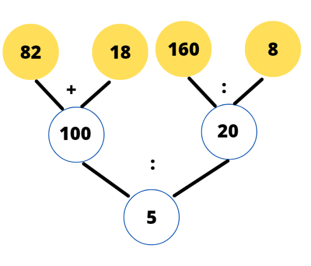 (82 + 18) : (160 : 8) = 100 : 20 = 5