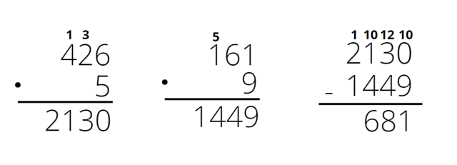 426 ∙ 5 – 9 ∙ 161 = 2130 – 1449 = 681