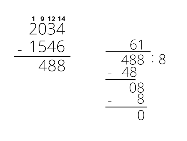 (2034 – 1546) : 8 = 488 : 8 = 61