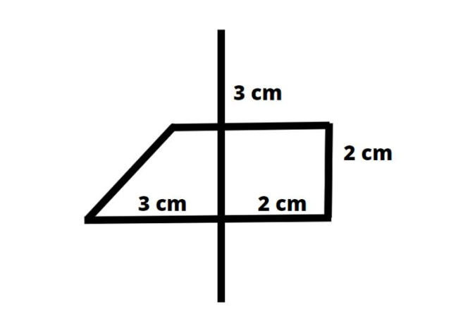 Otrzymano prostokąt o bokach 2 cm i 2 cm oraz trapez prostokątny o podstawach 3 cm i 1 cm oraz wysokości 2 cm.