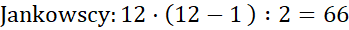 W tym ćwiczeniu zauważ, że każda z dziesięciu osób przywita się z 9. Wynik dzielimy przez 2, ponieważ należy uwzględnić to, że uścisk np. pana Kowalskiego z panią Kowalską i pani Kowalskiej z panem Kowalskim to jest tak naprawdę 1 uścisk a nie 2 uściski.