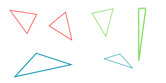 W tym zadaniu musisz zaznaczyć na czerwono trójkąty ostrokątne, prostokątne – na zielono, a rozwartokątne – na niebiesko.