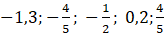 . Odczytaj jakie liczby zaznaczono na osi. Od lewej: –1,3; –0,8; –0,5; 0,2; 0,8. Zamień te liczby na ułamki zwykłe.