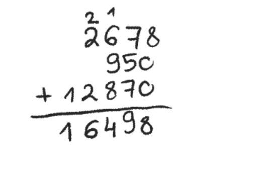 W tym zadaniu musisz dodać liczby 2678, 950 i 12 870 sposobem pisemnym.