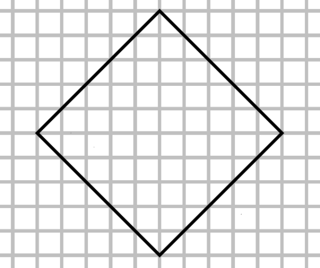 Kratka na rysunku ma bok długości . Skorzystaj z tego, że pole kwadratu o przekątnej wynosi , a przekątne kwadratu są sobie równe i przecinają się w połowie pod kątem prostym.