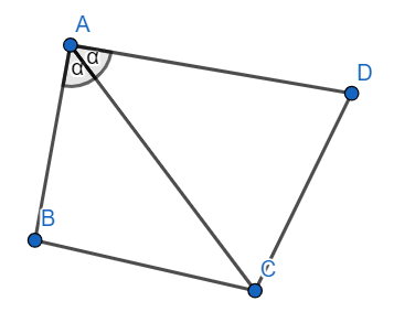 Kąty ACD oraz CAD mają równe miary, ponieważ trójkąt ADC jest równoramienny. Z sumy miar kątów w trójkącie (równej zawsze 180°) wyznacz miarę kąta ADC. Aby czworokąt był trapezem, suma miar kątów przy jednym boku musi być równa 180°. Zależność ta zachodzi dla czworokąta ABCD, więc jest on trapezem, co należało wykazać.