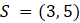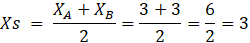 Odcinek AB. A = (3, 3), B = (7, 3), S = (5, 3)
