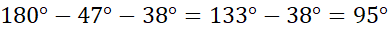Górny kąt tworzy z kątem 47 stopni i 38 stopni kąt 180 stopni.