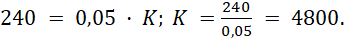 Weronika uzyskała 240 zł odsetek, czyli 5% z kwoty początkowej (K), więc